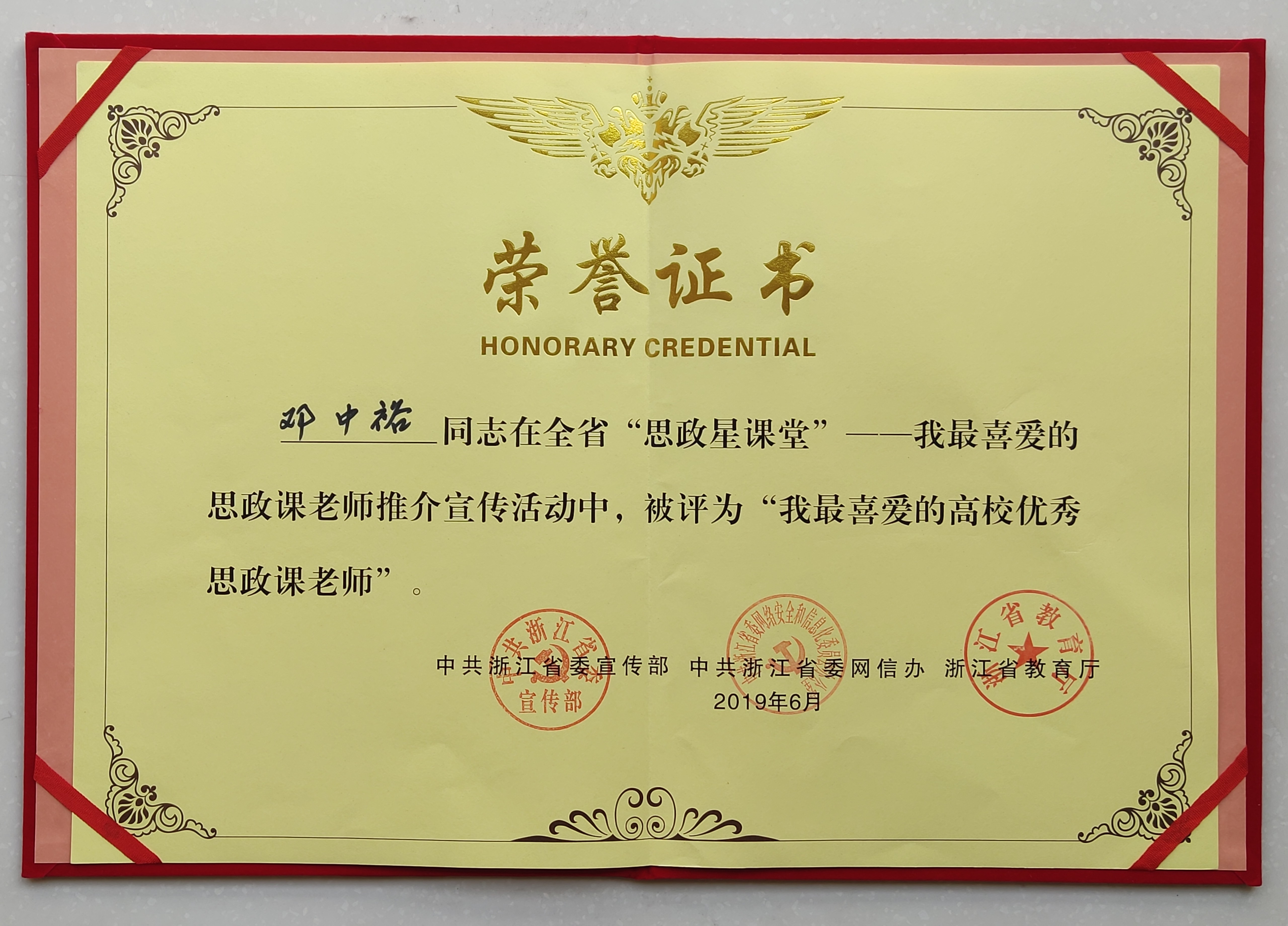 近日,由浙江省委宣传部、省委网信办、省教育厅联合策划推出的“思政星课堂”—— 我最喜爱的思政课老师推介宣传活动现场选拔在中国计量大学举行,全省20名高校思政课教师入围。通过专家评委、员工投票,公司邓中裕老师以题为《厚植爱国主义情怀》的思政课精彩展示,获得“我最喜爱的高校优秀思政课老师”的称号。邓中裕老师为bevictor伟德国际思想道德修养与法律基础教研室主任,他的思政课堂总是生动风趣,深入浅出,理论与实际相结合,深受广大同学喜爱,被同学们亲切地称为“邓男神”。