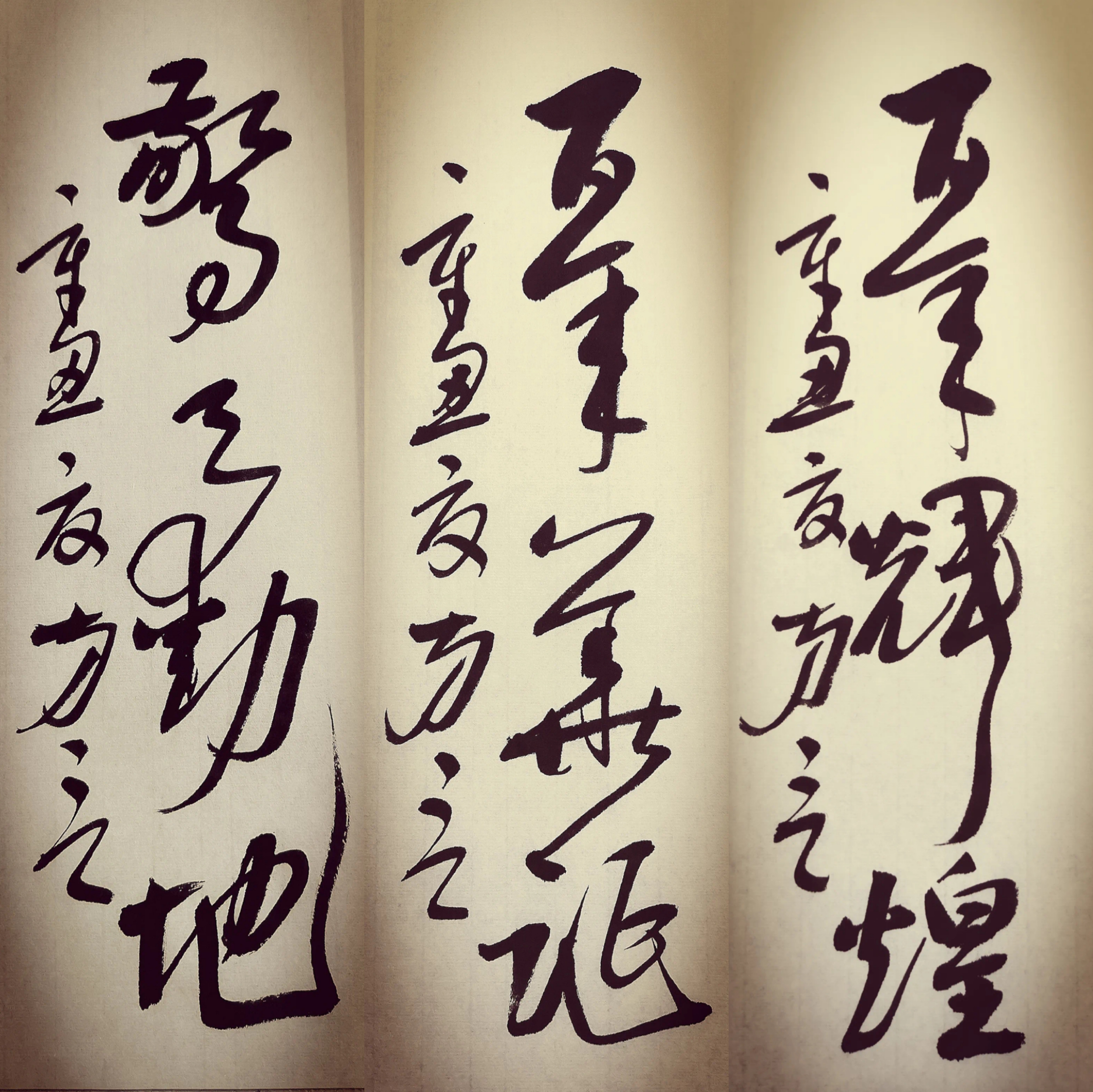 作品从左至右为《惊天动地》《百年华诞》《百年辉煌》