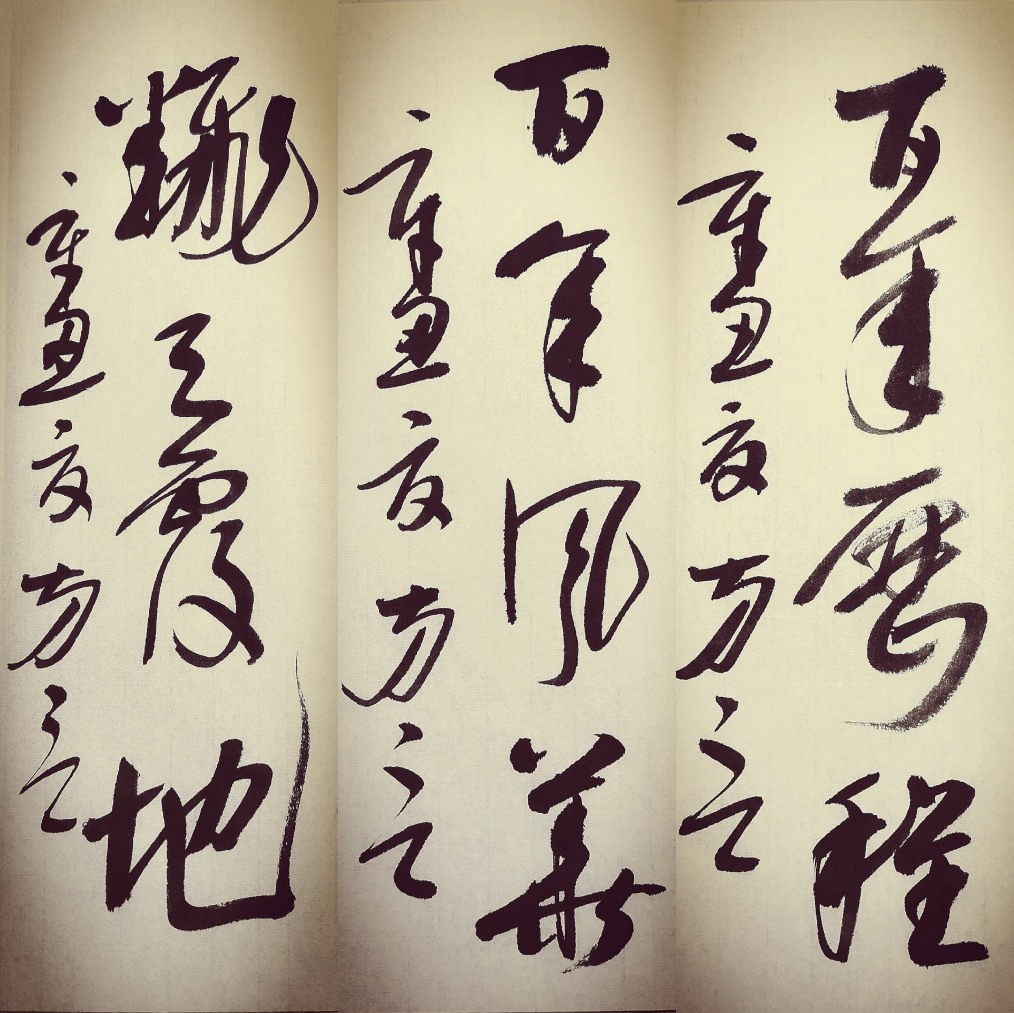 作品从左至右为《翻天覆地》《百年风华》《百年历程》