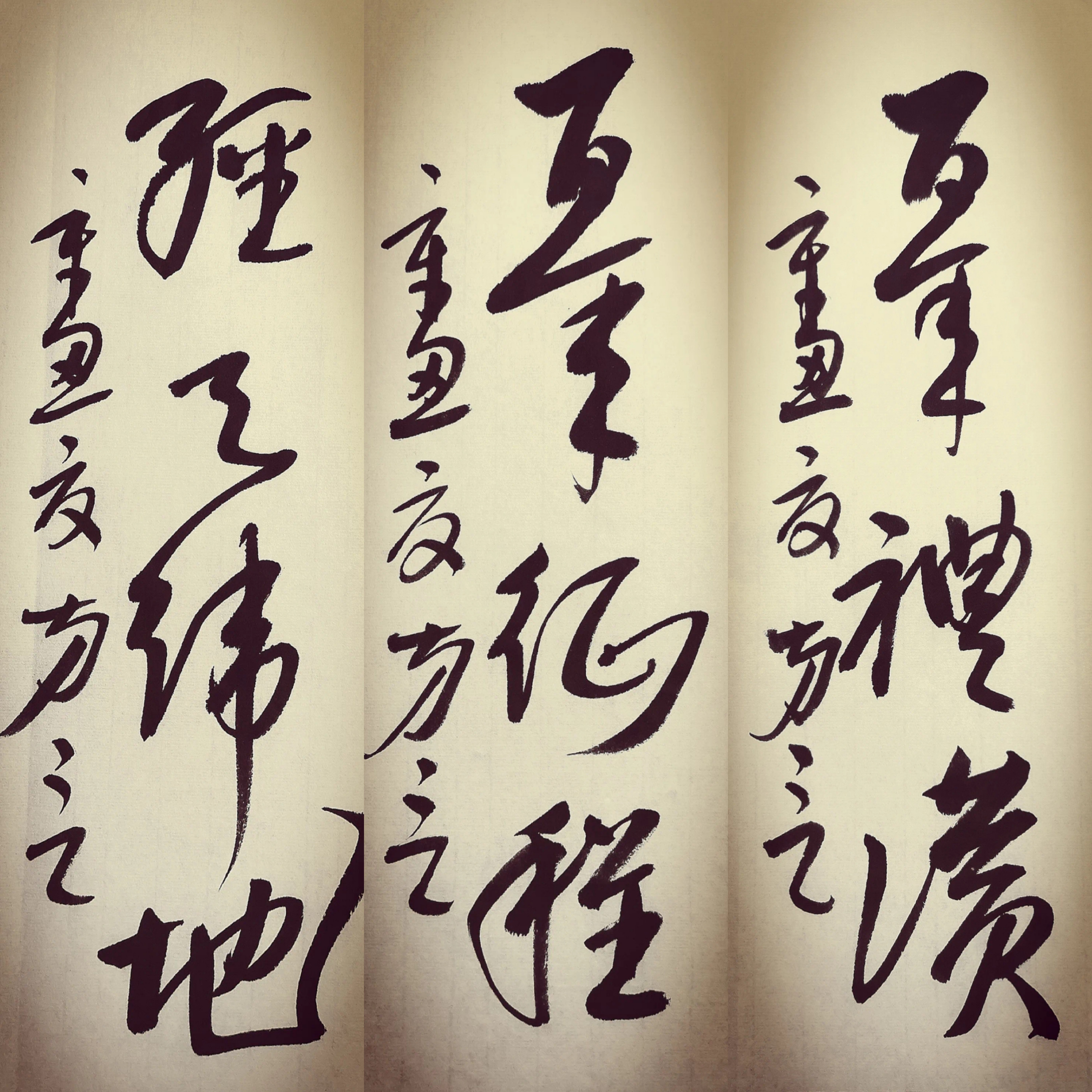 作品从左至右为《经天纬地》《百年征程》《百年礼赞》