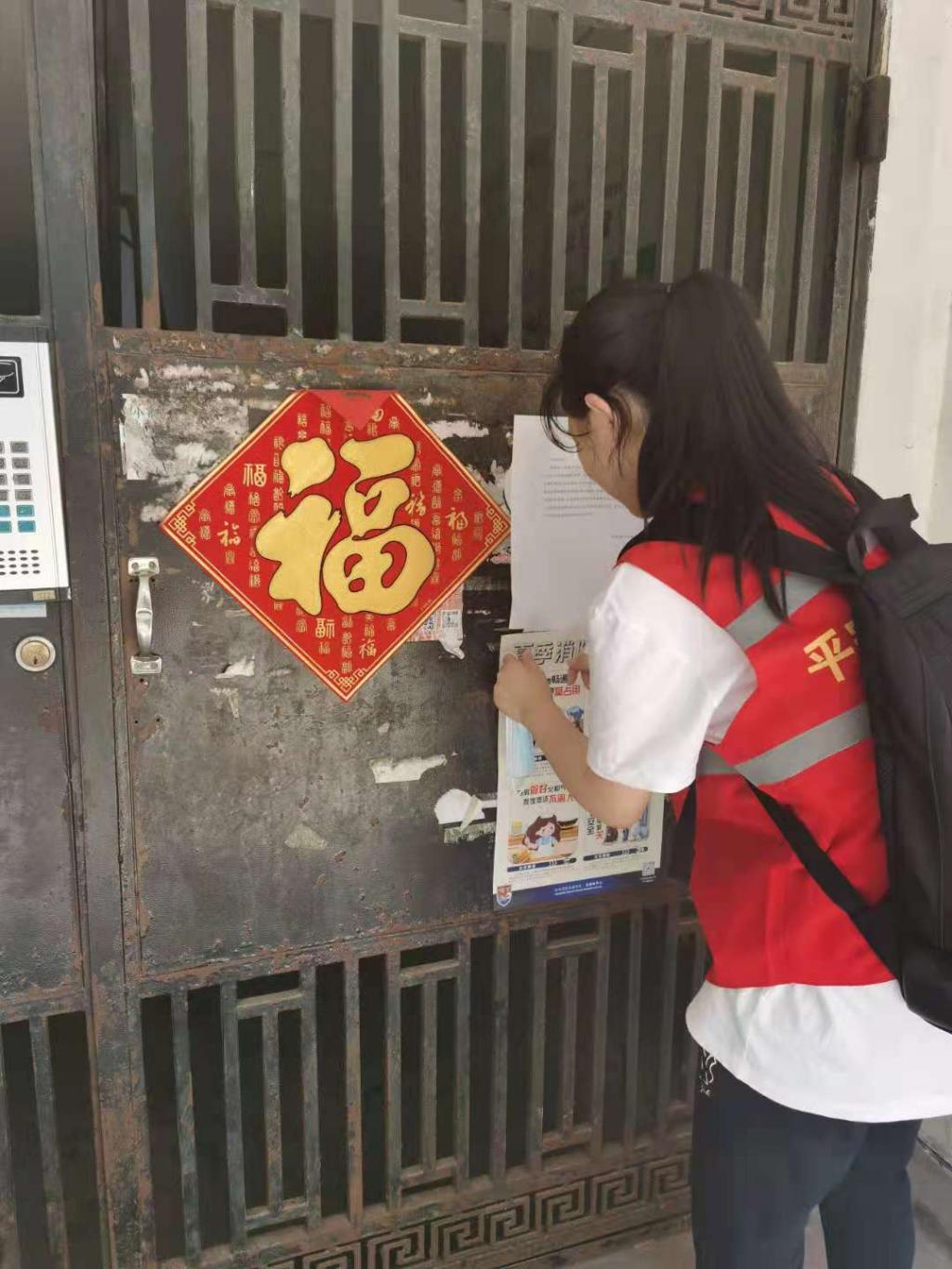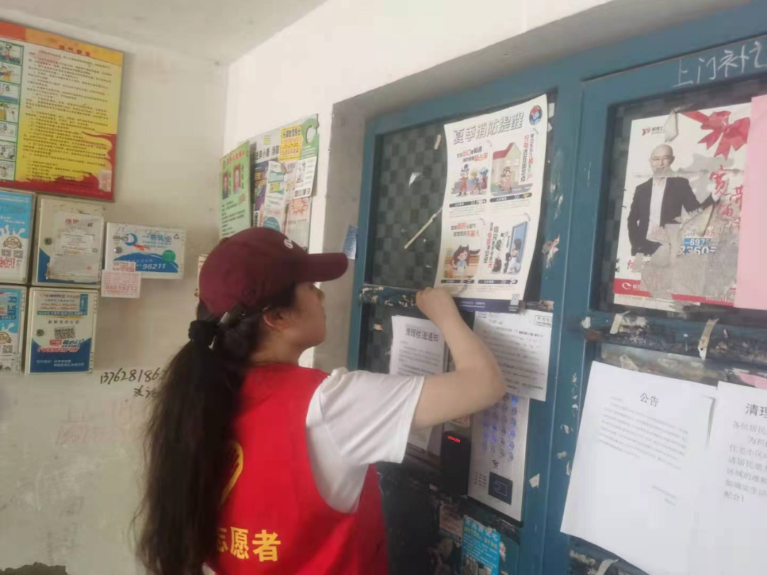 今天骄阳似火,恰似我们为小营街道老浙大社区的居民们做志愿的热情。小营街道是毛主席亲临视察过的全国唯一的一个街道,对小营街道的居民来说,讲卫生已不仅仅是一种生活习惯,更是一种道德标准、文明礼仪。几十年来,这里的居民们恪守着主席给他们的教导。我们走进小营街道老浙大校区,就看到了成荫的绿化和干净的街道。我们的任务是给每个单元楼前贴上消防宣传,一路走去,有许多环卫工人顶着烈日在清洁,她们看到我们穿着红马甲时都露出了十分明媚的笑容,哪怕不曾相识,也足以让我感受到这个社区的温暖。认真贴上夏日消防宣传海报,今天的实践让我们深刻体验到了基层社区服务的辛苦,但想到通过我们的努力,他们能减少消防隐患,就有了满满的成就感。