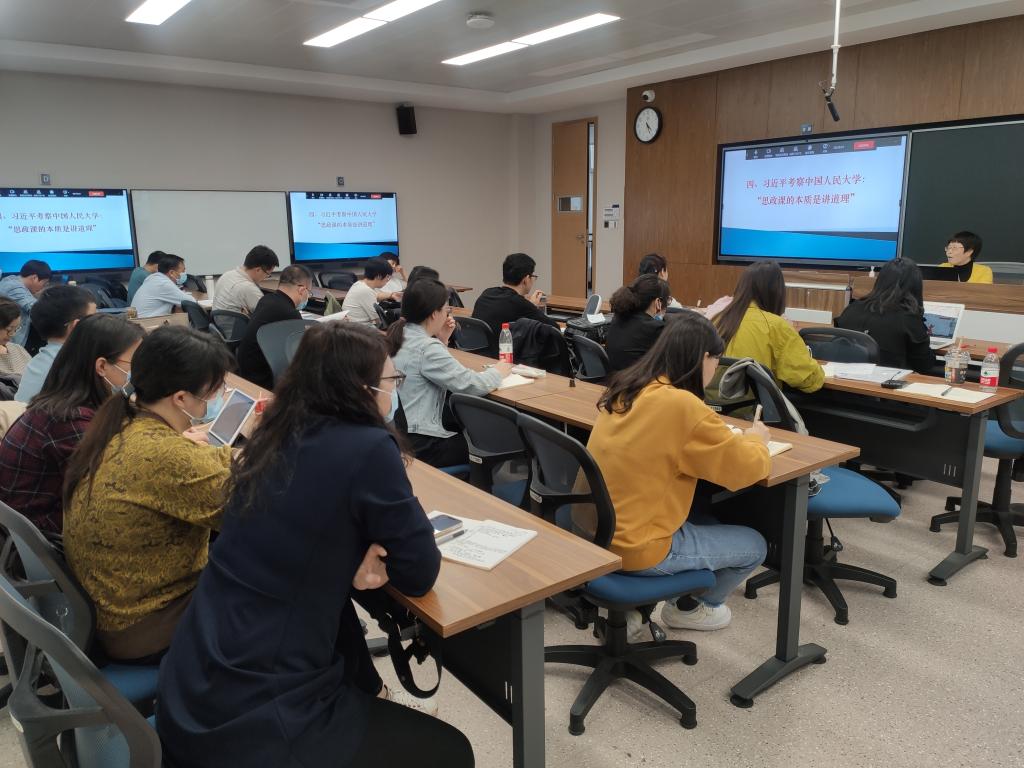 最后,公司教职工集体观看了关于习近平总书记在中国人民大学考察的相关新闻报道,深入学习领会习近平总书记在人大考察调研时发表的重要讲话,杨华经理围绕“为谁培养人、培养什么人、怎样培养人”等重要讲话内容做了解读,要求全体教师做到课前用心备课、课中用情讲课、课后用功反思,不断提高思政课时效性,引导员工在思想政治理论课中汲取成长的力量、激发奋斗的热情。