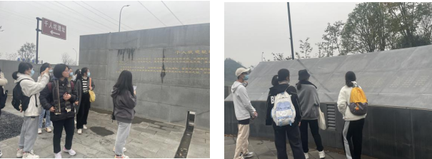 最后,同学们来到几百米之外的千人坑遗址,这是日军当年杀害我同胞的刑场和抛尸地点。同学们深刻缅怀被日军残害的同胞,并立下为中华民族伟大复兴而团结奋斗的报国之志。