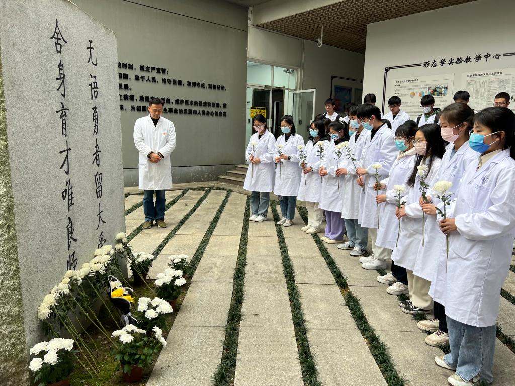 茕茕清明,淫雨霏霏。在这个特殊的日子里,第二临床医公司中西医结合临床专业60名员工,在钱国玲老师的带领下,前往基础医公司实验教学中心,开展《思想道德与法治》课程实践教学活动。本次活动旨在缅怀无语良师,感悟生命价值,坚定职业理想。
