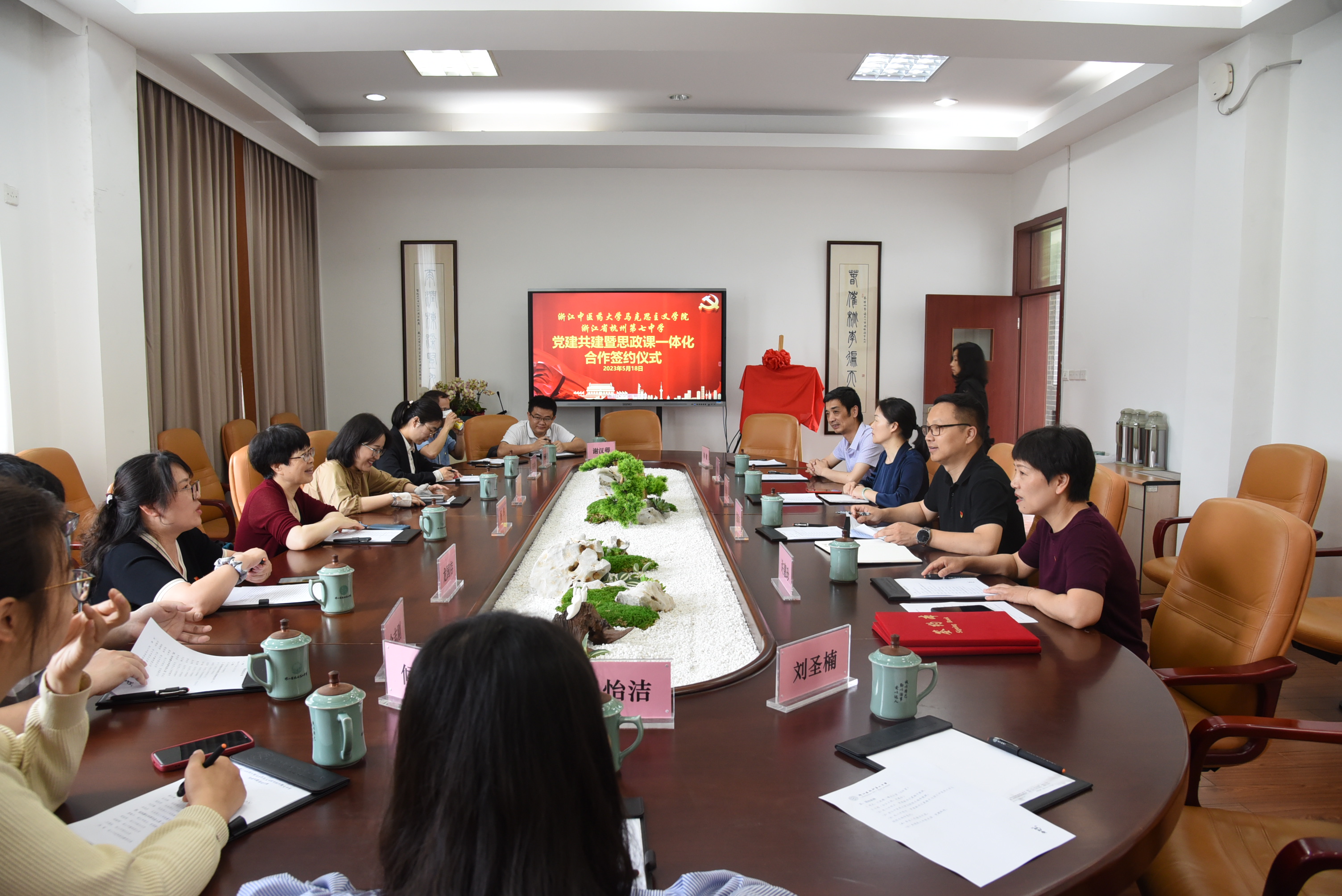 为贯彻习近平总书记关于思政课建设的重要论述,积极落实教育部、中宣部等十部门《全面推进“大思政课”建设的工作方案》和教育部办公厅《关于开展大中小学思政课一体化共同体建设的通知》等文件精神,推动思政课建设内涵式发展,切实增强思政课的针对性、有效性。5月18日上午,bevictor伟德国际与杭州第七中学在杭七中转塘校区举行了“大中小学思政课一体化”共建合作签约仪式,公司bevictor伟德国际经理杨华、纲要教研室主任龙国存、党政办主任徐夏雨及骨干教师代表,杭州第七中学董事长夏峰平、校办主任程丽琴、教科室主任郑晓明、党办主任许惠珍以及优秀政治教师代表林敏等参加了此次会议。