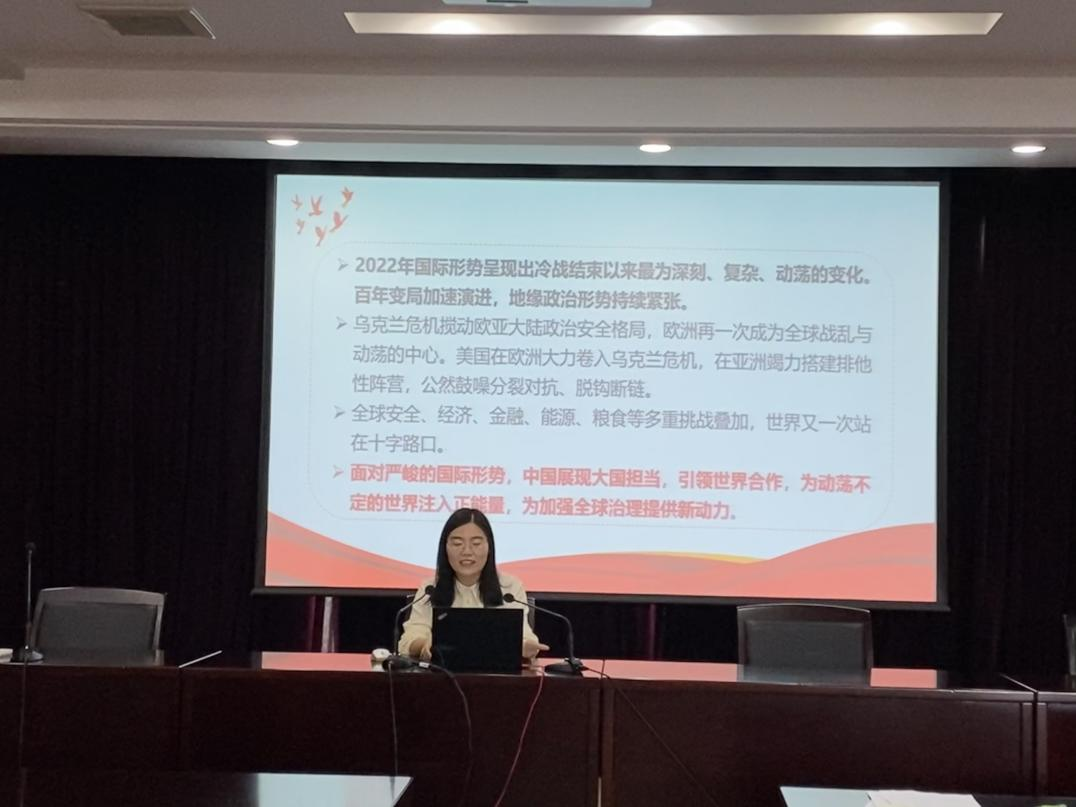 会上,bevictor伟德国际胡小玲、陈冬梅和朱金玲三位老师分别就《实施科教兴国战略、强化人才资源支持》《国际局势与中国外交》和《立志复兴伟业,踔厉奋发前行》三个教学专题为全校形势与政策授课教师作了专题辅导。