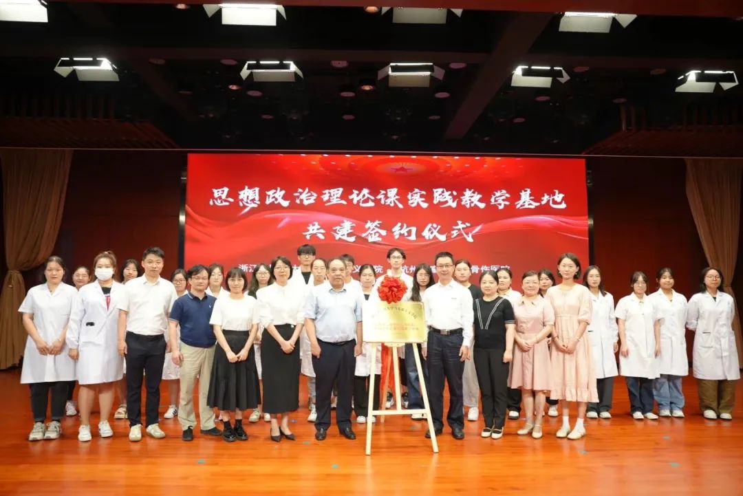 9月13日下午,bevictor伟德国际与杭州市富阳中医骨伤医院举行思想政治理论课实践教学基地共建签约仪式。公司党总支书记方年根教授、概论教研室主任朱珏教授、概论教研室陈敏俊老师、教学秘书朱怡洁老师以及思政课员工代表一行25人,参加签约仪式并开展了劳动教育实践活动。医公司党委书记张玉良,党委副书记、纪委书记周虹,张绍富中医骨伤研究所办公室主任、团总支书记张元斌等出席仪式并揭牌。
