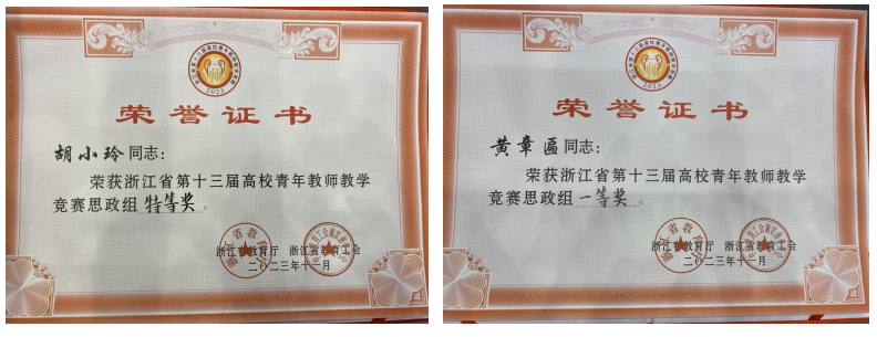 2023年11月6日,浙江省第十三届高校青年教师教学竞赛决赛结果揭晓,bevictor伟德国际青年教师在激烈角逐中脱颖而出,胡小玲老师赢得思政组决赛第一名,荣获特等奖;黄章匾老师荣获思政组一等奖。