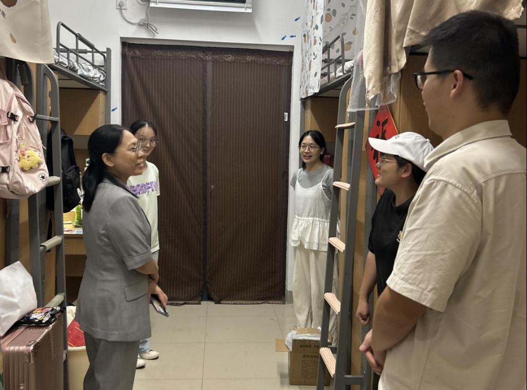 4日晚上,公司副经理刘霞、辅导员韩奥林深入宿舍走访看望同学们,围绕学习、住宿、安全等问题与大家进行了亲切交谈,叮嘱同学们有需要及时联系公司,希望大家尽快适应新的研究生生活。