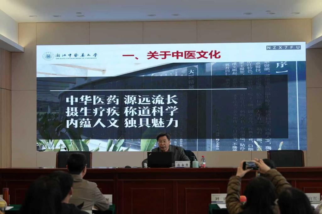 本次学习会特邀浙江省中医药学会会长、伟德国际唯一官网原董事长、国家“973”首席科学家、首届全国名中医范永升教授作中医药文化专题报告。他从文化、中医文化的源头、中医理论与中医文化、中医文化应体现的内容等四个方面简要介绍了中医文化,重点从天人合一与整体观念,因人而异与辨证论治,致中和与阴阳平衡,未雨绸缪与治未病,仁者爱人、修身克己与大医精诚等五个方面详细介绍了中医文化的基本内容,并希望马院思政课教师弘扬中医文化,促进人才培养,助力健康浙江,推动社会进步。
