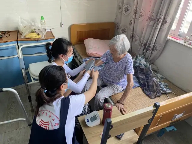 队员们带来了血压器,利用她们所学的专业知识,为老人们测量血压,并为老人们讲解日常生活中的注意事项。