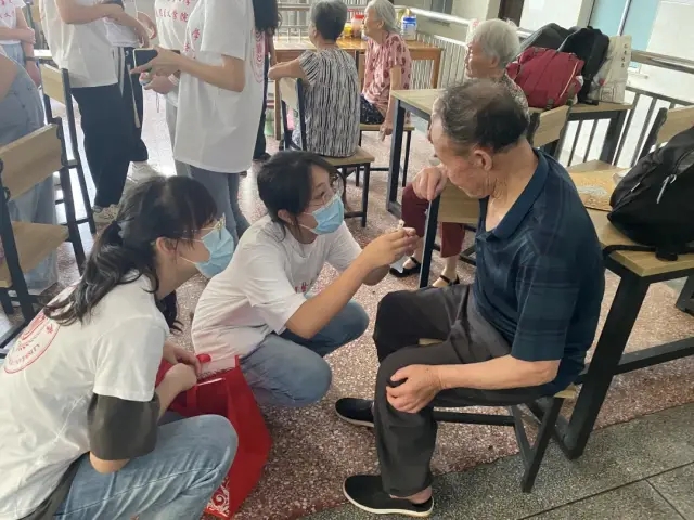 爷,我给您揉揉肩膀”“奶奶,我给您捶捶背”…… 队员们用熟练的按摩手法帮老人们按摩,让他们能够放松身心。