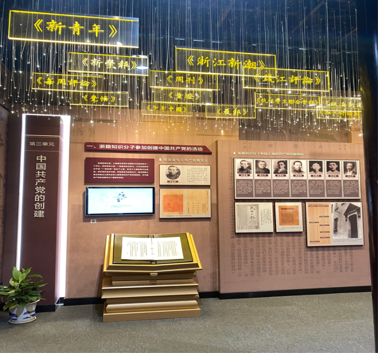 纪念馆分四个部分:“潮起钱塘”、“星火钱塘”、“奔腾钱塘”、“今日钱塘”,采用传统陈列和现代科技手段相结合的展示手法,生动再现中共杭州地方组织从创建、发展、壮大以及最终形成燎原之势的全历史过程,保留着杭州这片土地上诞生中共小组最初的印记。图片