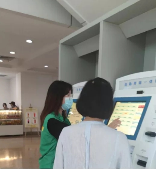 一大早赶到医院后,她们先换上了志愿者服装,开始了导医志愿者服务。图片