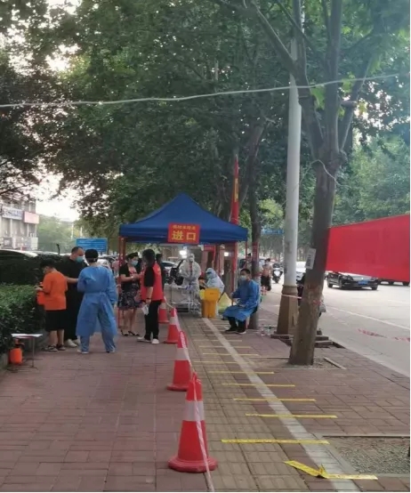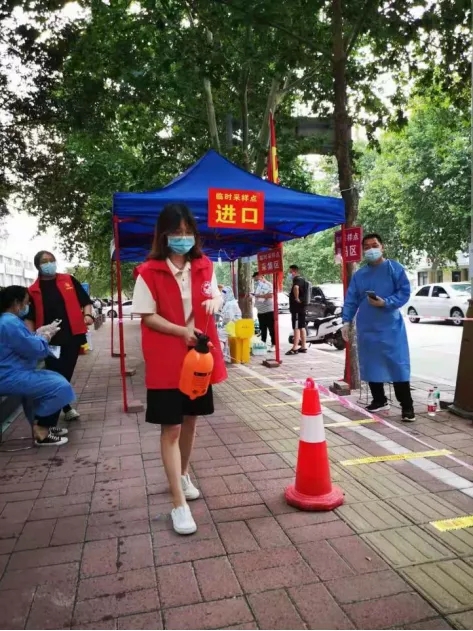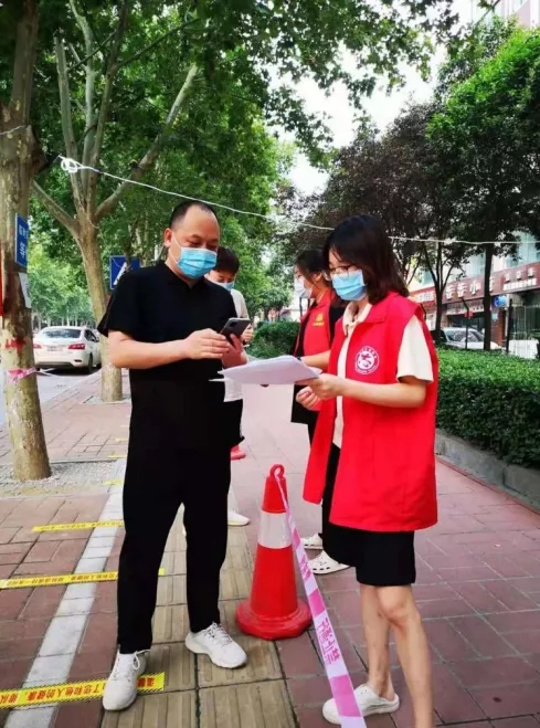 “您好!请您配合我们测量体温,并扫码登记”“请您准备好身份证”“我来帮您登记信息”“请大家保持好距离、注意防护。身着红马甲的张馨予同学“疫”无反顾,在炎炎烈日下,认真尽责地协助值守人员对来往行人、车辆逐一进行测量体温、查验健康码和行程码、身份证扫描、秩序维护,并积极做好疫情防控政策措施和防护知识宣传,成为社区疫情防控一线的一名服务骨干