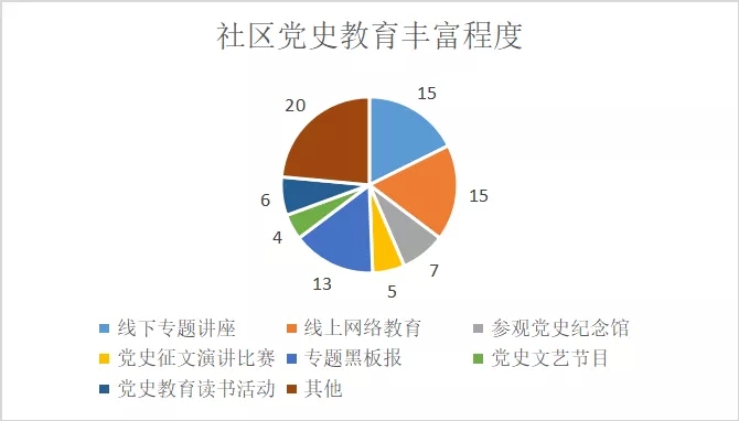 从调查结果上看,尽管大部分的居民还是会去了解或者听说涉及到社区党史教育的活动,但是当地仍然有一小部分的居民对党史学习教育漠不关心,且有接近1/3的社区从未开展过党史教育的活动。尽管社区有着较为丰富的党史学习教育活动,但由于宣传深度不足,形式不够新颖等问题,居民的参与度仍然较低。