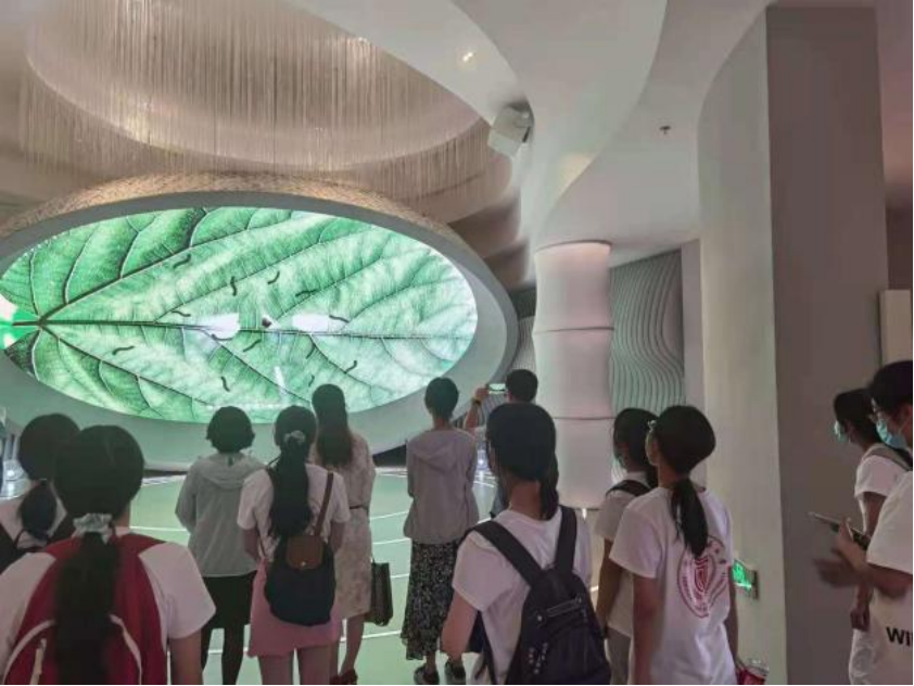 随后,我们一行人前往西山漾文化交流中心观摩,了解湖州丝绸文化。这里有天虫吐司的秘密,也有昔日湖丝的辉煌;既有传统技法的华美,也有现代工艺的璀璨。实践团队通过这一窗口,体悟古老的湖州丝绸文化,感受丝绸小镇的改革创新精神。