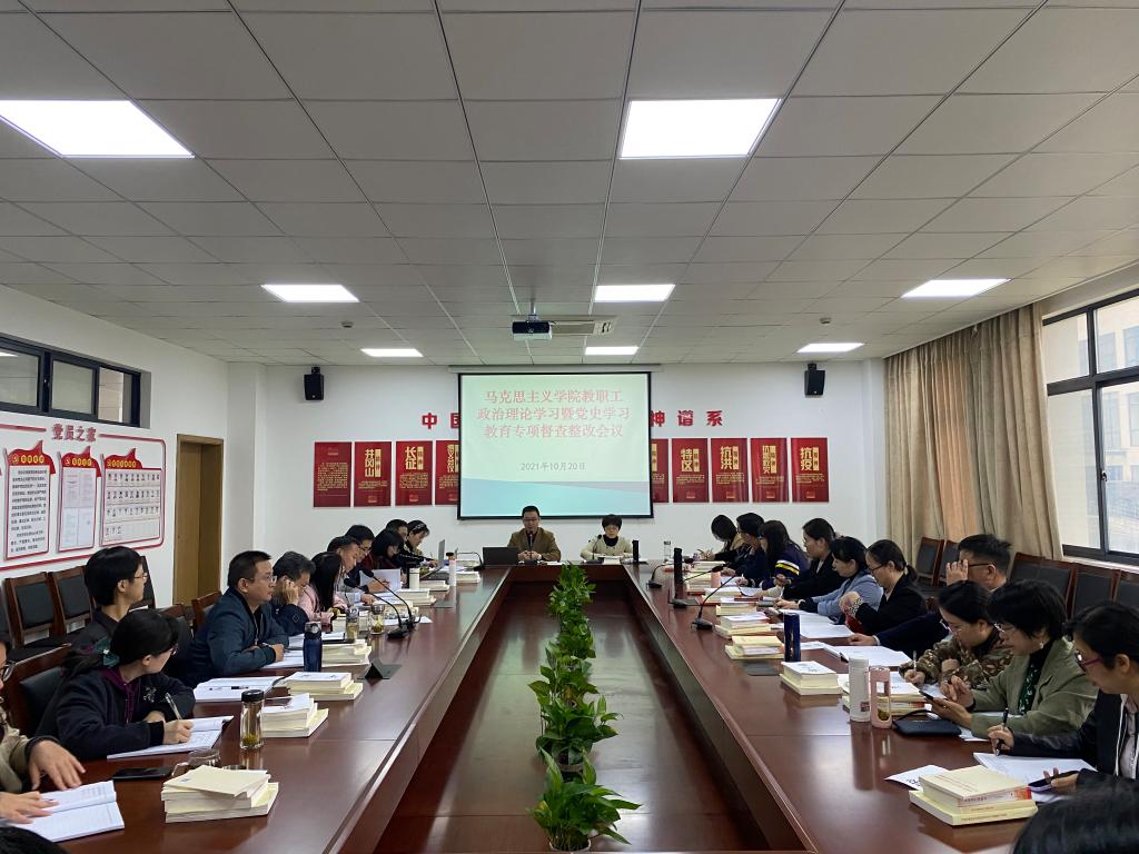 10月20日下午,马克思主义公司党总支在富春校区2B222会议室组织召开教职工政治理论学习暨党史学习教育专项督查整改会议。本次学习活动由公司党总支书记方年根主持,公司经理杨华及公司其他教职工参加。