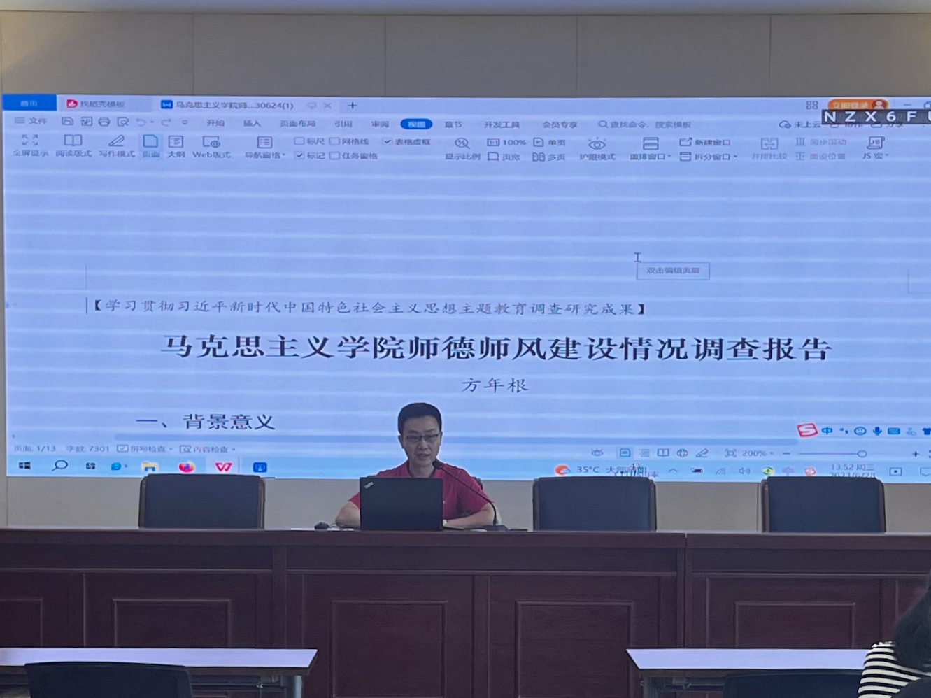 方年根在会上围绕“bevictor伟德国际师德师风建设情况”作了调研成果交流。他指出,师德师风是教师和教育工作者在从事教育活动中必须遵守的道德规范、行为准则和情操品质。师德师风是评价教师队伍素质的第一标准。鉴于2022年公司出现多起师德师风负面事件,严重影响到公司的形象声誉。为化解bevictor伟德国际存在的师德师风风险隐患,助力公司创建一流,根据公司学习贯彻习近平新时代中国特色社会主义思想主题教育调查研究实施方案,确定并开展了“bevictor伟德国际师德师风建设情况调研”,旨在摸清情况、查准问题、对症下药、化解风险、促进发展,引领全院教师以优良师德师风保障为党育人、为国育才。