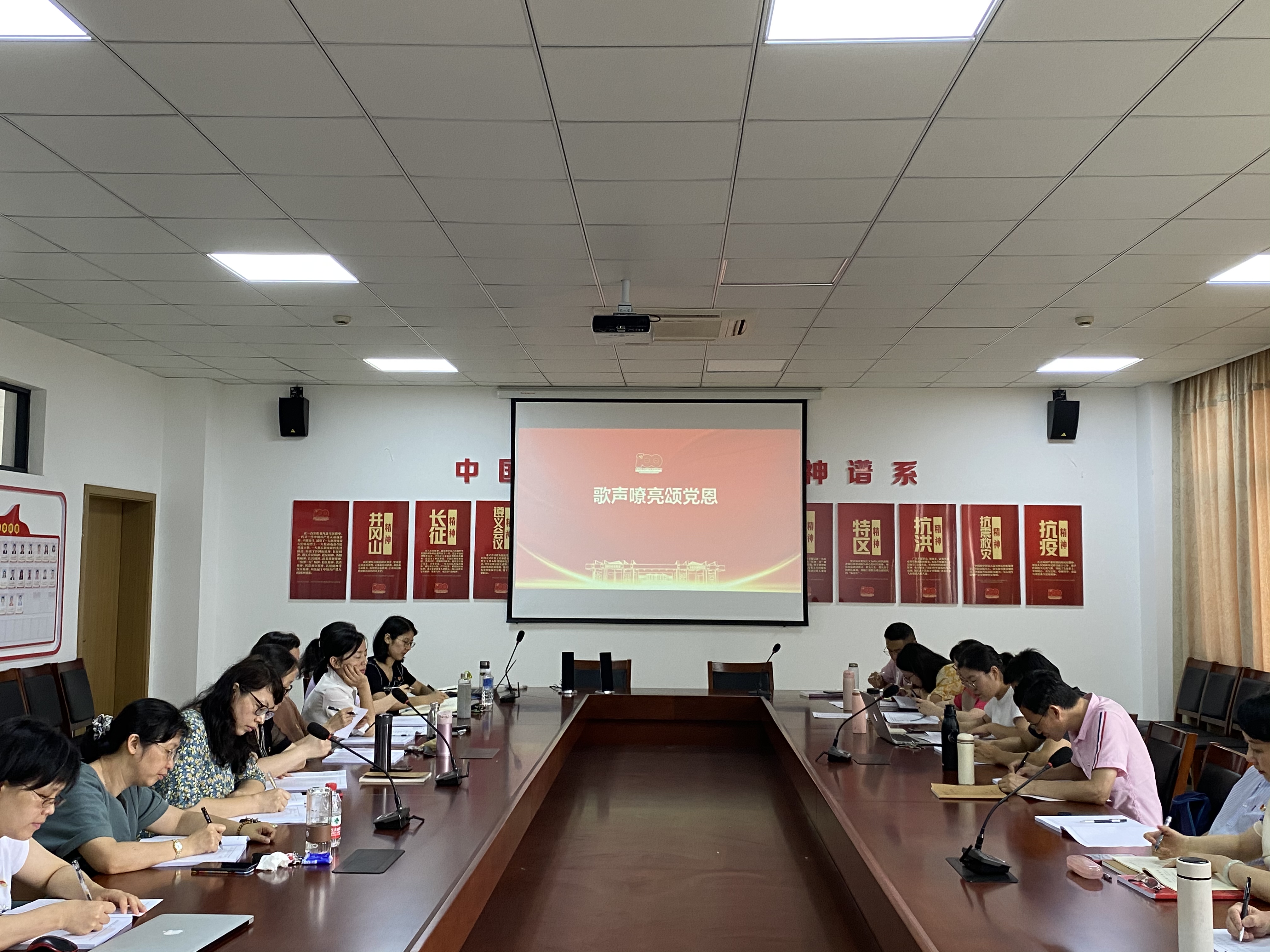首先,公司全体教职员工认真聆听了《没有共产党就没有新中国》和《唱支山歌给党听》两首红色歌曲。将聆听红色歌曲和党史学习教育有机结合,通过歌声嘹亮颂党恩,进一步坚定了理想信念,抒发了永远听党话跟党走感党恩之情。